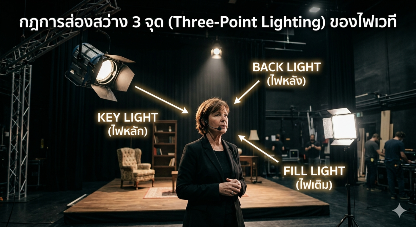 นี่คือพื้นฐานสำคัญเพื่อให้ตัวบุคคลบนเวทีดูมีมิติ ไม่แบนราบ และแยกออกจากฉากหลังได้อย่างชัดเจน: