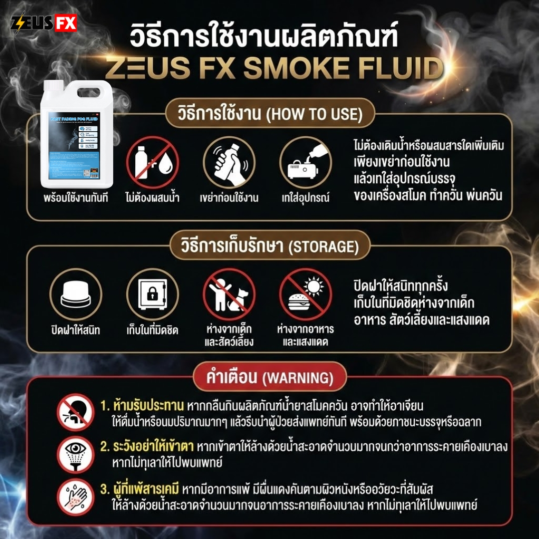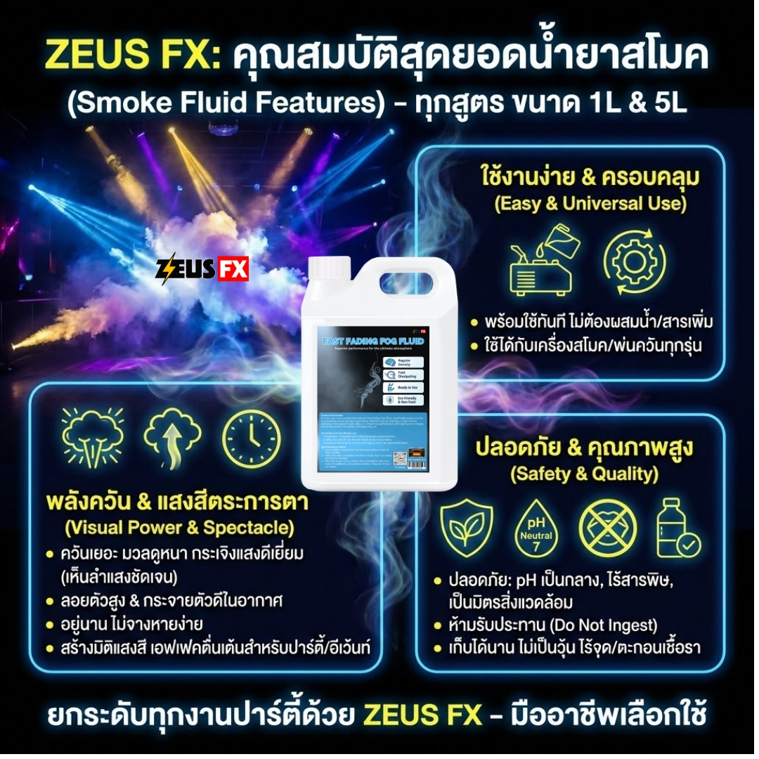 • ประสิทธิภาพสูง: ใช้งานได้กับเครื่องทำควัน (Fog Machine) มาตรฐานทุกรุ่น
